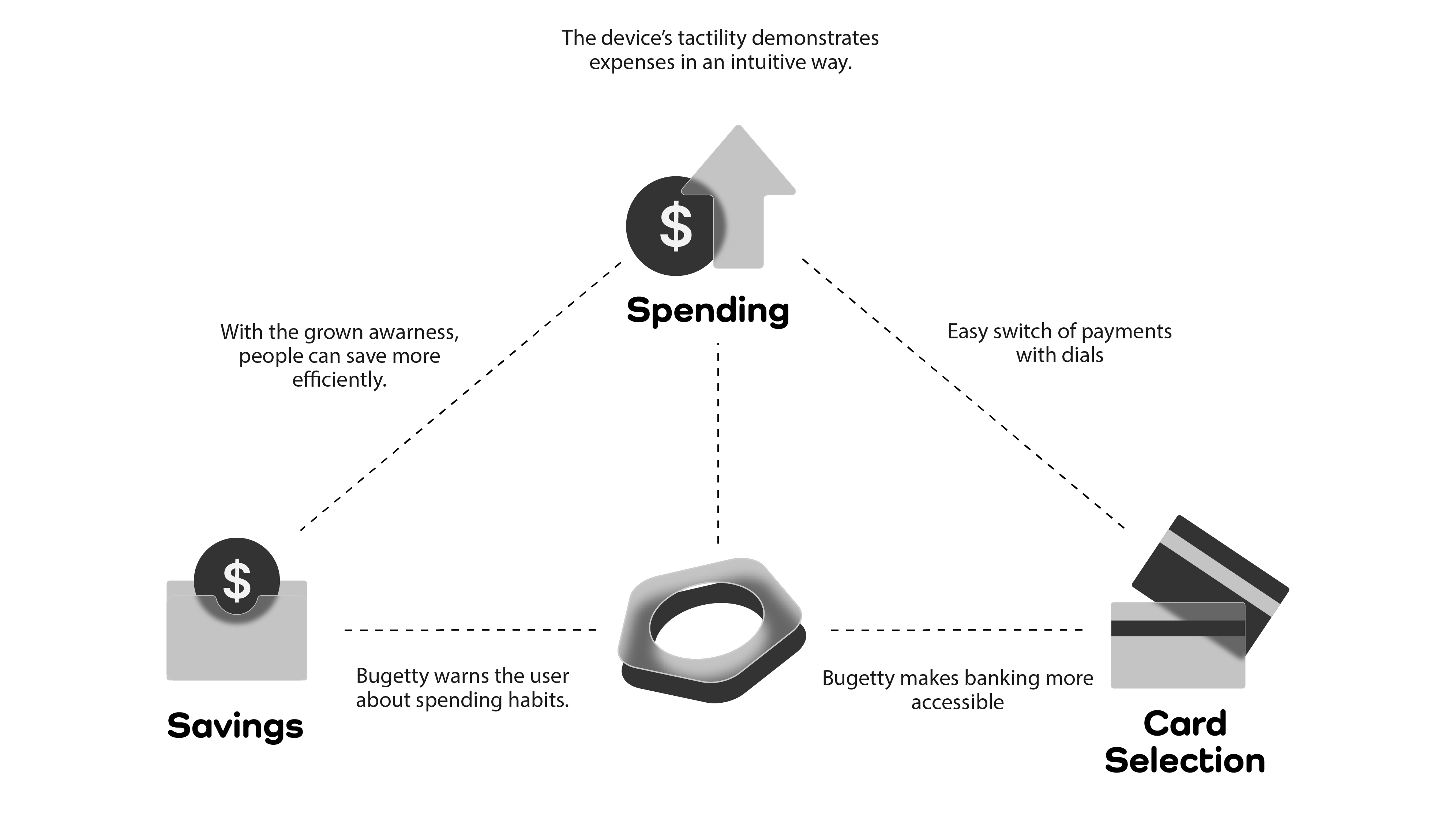 Budgetty is designed as a hybrid physical-digital wallet that focuses solely on essential budgeting functions. By simplifying spending, saving, and card selection into intuitive tactile interactions, the device helps users stay aware of their financial habits without distractions. Its minimal system encourages mindful money management and makes everyday banking more accessible and efficient.